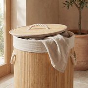 Cesto para Ropa Redondo de Bambú Natural con Tapa